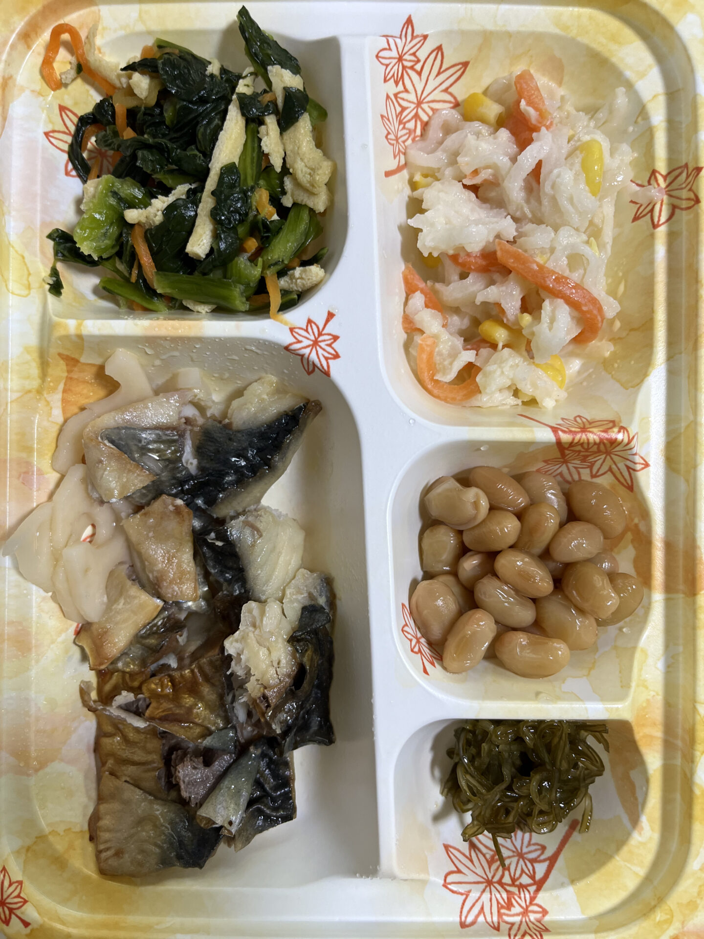 宅配cook123 【宅配クック123】もうスタッドレスを総託している・・・。2025.11.8朝食 2025.11.08投稿 スタッドレス / 刻み普通食 / 在宅介護 / 宅配クック123 / 朝食 2025.11.7夜136-83-36.6 2025.11.8朝136-80-36.4 朝食 宅配クック123 刻み普通食 全体 さば塩焼き さば塩焼き れんこんの甘酢漬け 小松菜の和え物 大根サラダ 大根の甘煮 切り昆布煮 駐車場の横をふと見ると、スタッドレス装着。 早くないか?っと思いつつ、信号待ちでチラ見。 前方2台、横1台がスタッドレス。 明日にもスタッドレスを買いに行くか? 2年前に買ったスタッドレスは今年7月にバーストだし・・