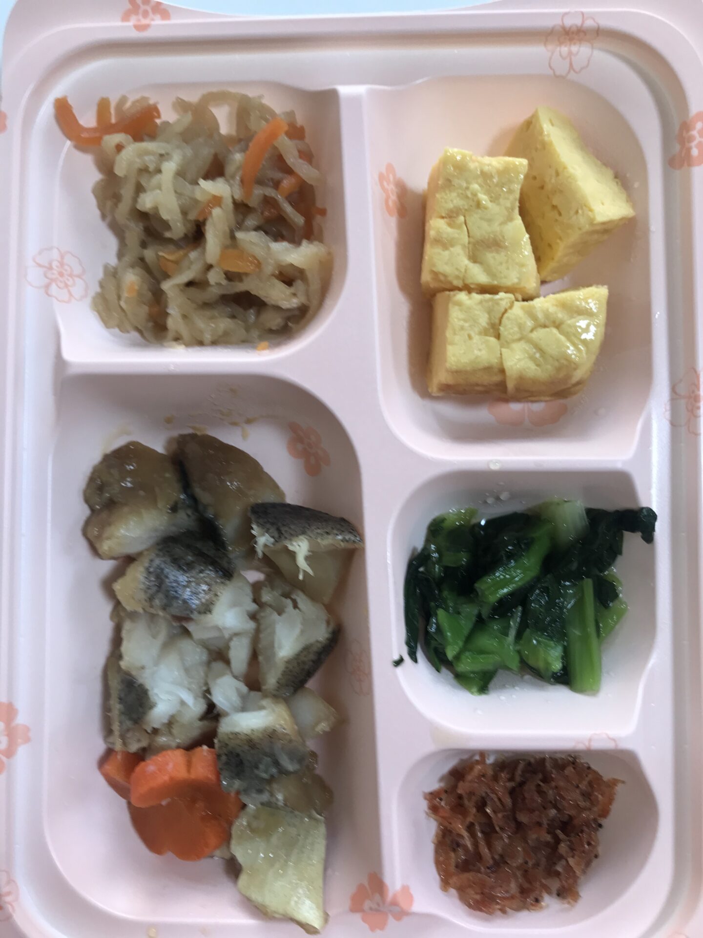 宅配cook123 【宅配クック123】スケソウダラ煮付け2023.3.22夕食 2023.03.24更新 刻み普通食 / 在宅介護 / 宅配クック123 2023.3.22夜125-78-36.6 夕食 宅配クック123 刻み普通食 全体 メインのおかず(スケソウダラ煮付け) スケソウダラ煮付け 花柄人参 切干大根 出汁巻き玉子 小松菜のお浸し あみ佃煮 男同士でランチ会・・・。 アルコールナシ。 なぜか?全員飲めない(笑)。 音信不通の友人と病気自慢が多くなってきたお年頃。 #宅配クック123 #在宅介護
