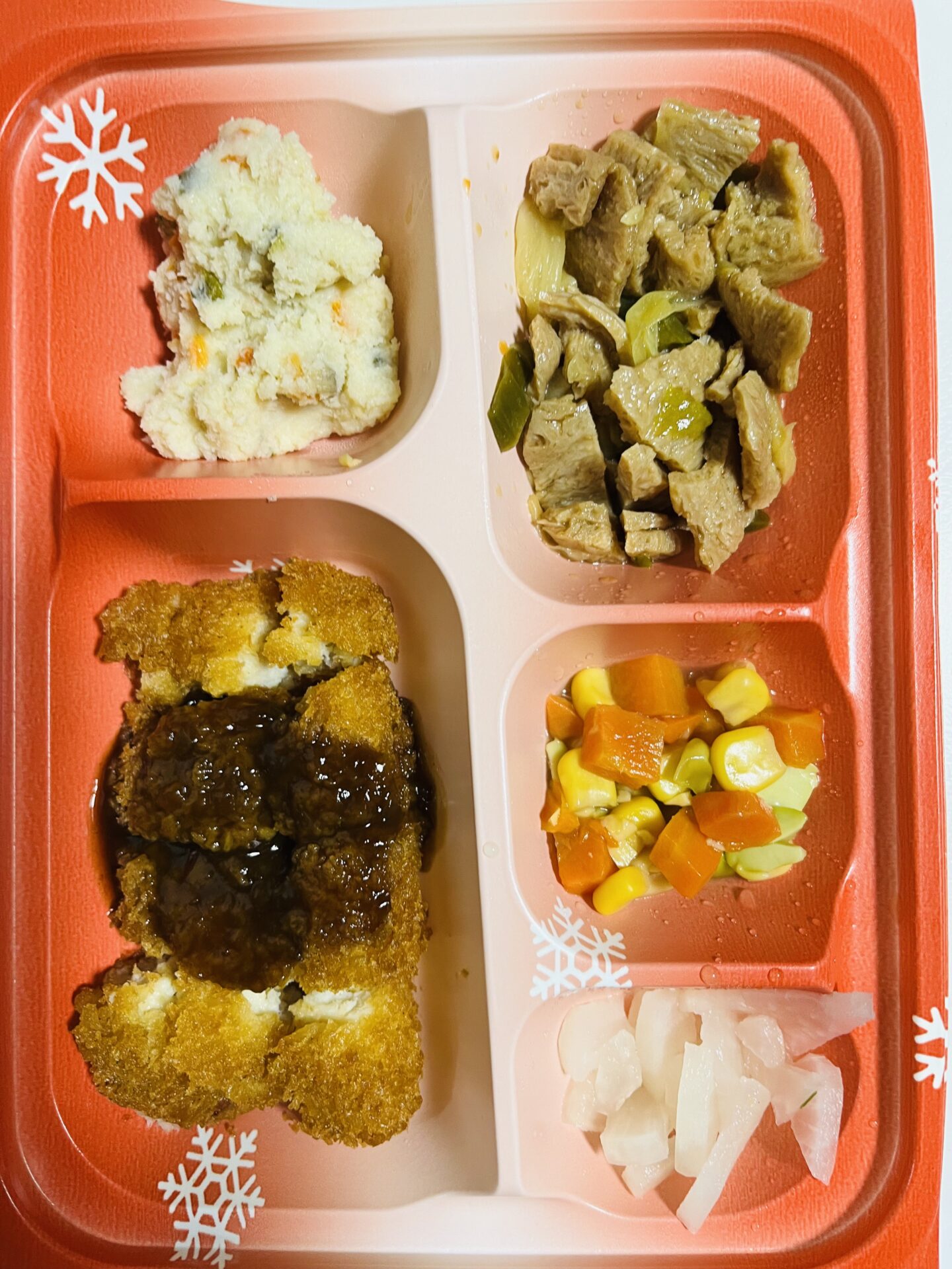 宅配cook123 【宅配クック123】今朝は近所の屋根は真っ白だ!2023.12.21朝食 2023.12.24更新 刻み普通食 / 在宅介護 / 宅配クック123 2023.12.20夜123-73-36.6 2023.12.21朝118-64-36.8 朝食 宅配クック123 刻み普通食 全体 メインのおかず(カジキカツ) カジキカツ 豆乳入りしっとり卯の花 畑のお肉とキャベツの味噌炒め 枝豆とコーンの洋風煮 野沢菜入り大根の漬物 フライソース 母の介護がひと段落。 今日は、晴天。雲ひとつない。 近所の屋根も真っ白だ・・・ゴミ捨て・・・ヤダなぁ(笑)