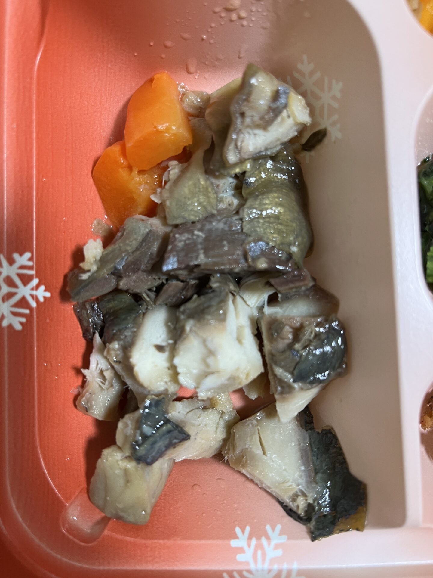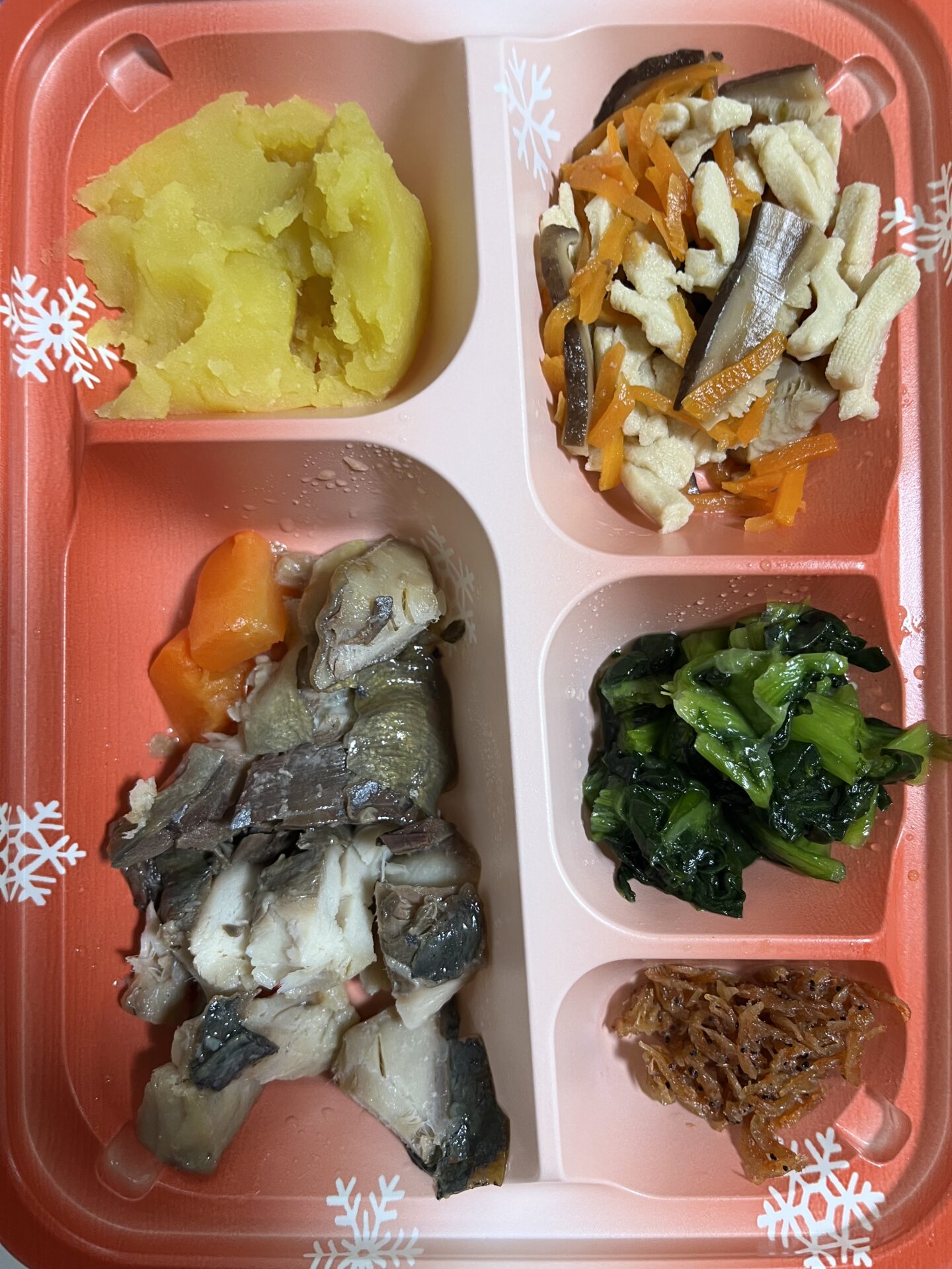宅配cook123 【宅配クック123】体温36.9℃にびっくり!2025.12.18朝食 2025.12.18投稿 びっくり / 体温 / 兄弟 / 刻み普通食 / 在宅介護 / 宅配クック123 / 朝食 / 汗 2025.12.17夜138-80-36.9 2025.12.18朝 朝食 宅配クック123 刻み普通食 全体 あじみりん焼き あじみりん焼き 人参煮 さつまいもの甘煮 高野豆腐と野菜の煮物 小松菜お浸し あみ佃煮 夕方に36.9℃が出て、びっくり! 自宅前に停車できず、ちょっと離れた場所から歩いたそうだ。 母も汗ビッチョリ・・・。 ちょっと時間をあけて測ったが・・・こんな時もある。 隣の兄妹が勢揃い・・・なにかあったかな?