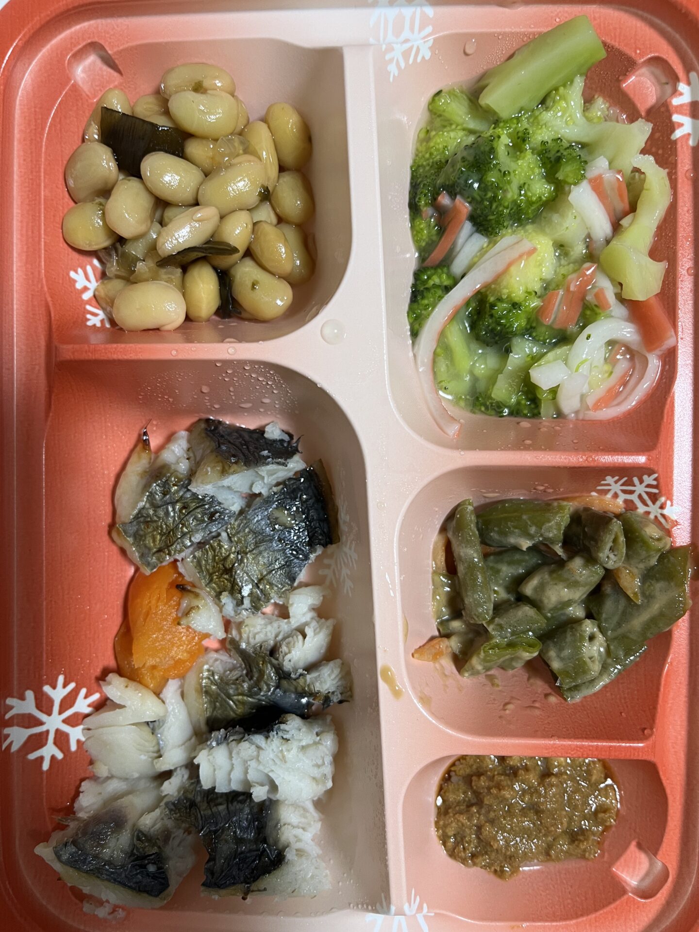 リハビリ宅配cook123 【宅配クック123】入浴や着替えの有無を疑う時は・・・。2025.12.16朝食 2025.12.16投稿 入浴 / 刻み普通食 / 在宅介護 / 宅配クック123 / 朝食 / 疑う / 着替え / 通所 2025.12.15夜146-89-36.4 2025.12.16朝 朝食 宅配クック123 刻み普通食 全体 さわら塩焼き さわら塩焼き 花形人参 お豆と昆布の煮物 ブロッコリーのカニカマあんかけ いんげんのピーナッツ和え 肉味噌(角一味噌) 通所理由のひとつ、入浴。 ホントに入浴したか?着替えをしたか?が疑問に感じることがあった。 そこで、母の下着を行かせる時は紫色?、着替えの下着をベージュにしている。 これで入浴や着替えの有無をある程度把握できる。