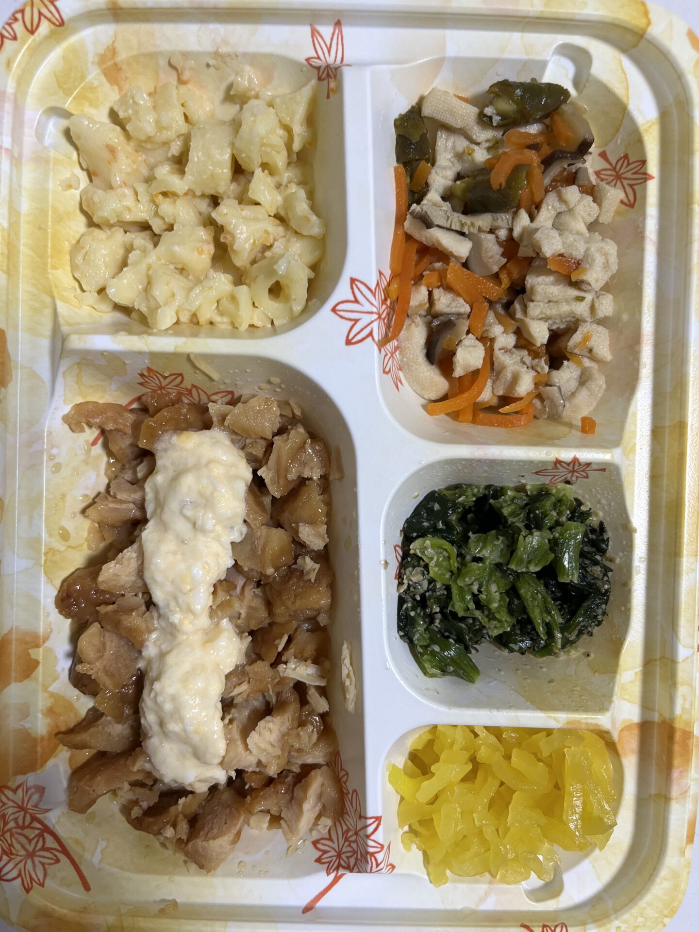 宅配cook123 【宅配クック123】年末年始のディのやりくり。2025.12.1朝食 2025.12.01投稿 ディ / やりくり / 刻み普通食 / 在宅介護 / 宅配クック123 / 年末年始 / 朝食 2025.11.30夜131-73-36.3 2025.12.1朝 朝食 宅配クック123 刻み普通食 全体 だしから揚げ だしから揚げ マカロニのクリーム煮 高野豆腐と野菜の煮物 ほうれん草のごま和え 刻みたくあん タルタルソース 師走。 また正月が来るのか・・・っと思うと、ため息が出る。 ディは29日から休業。 ディケアは31日までしっかり営業。 ケアマネに28日(火)はディケアの方に行けないか?交渉してもらうことにした。 どうかな?