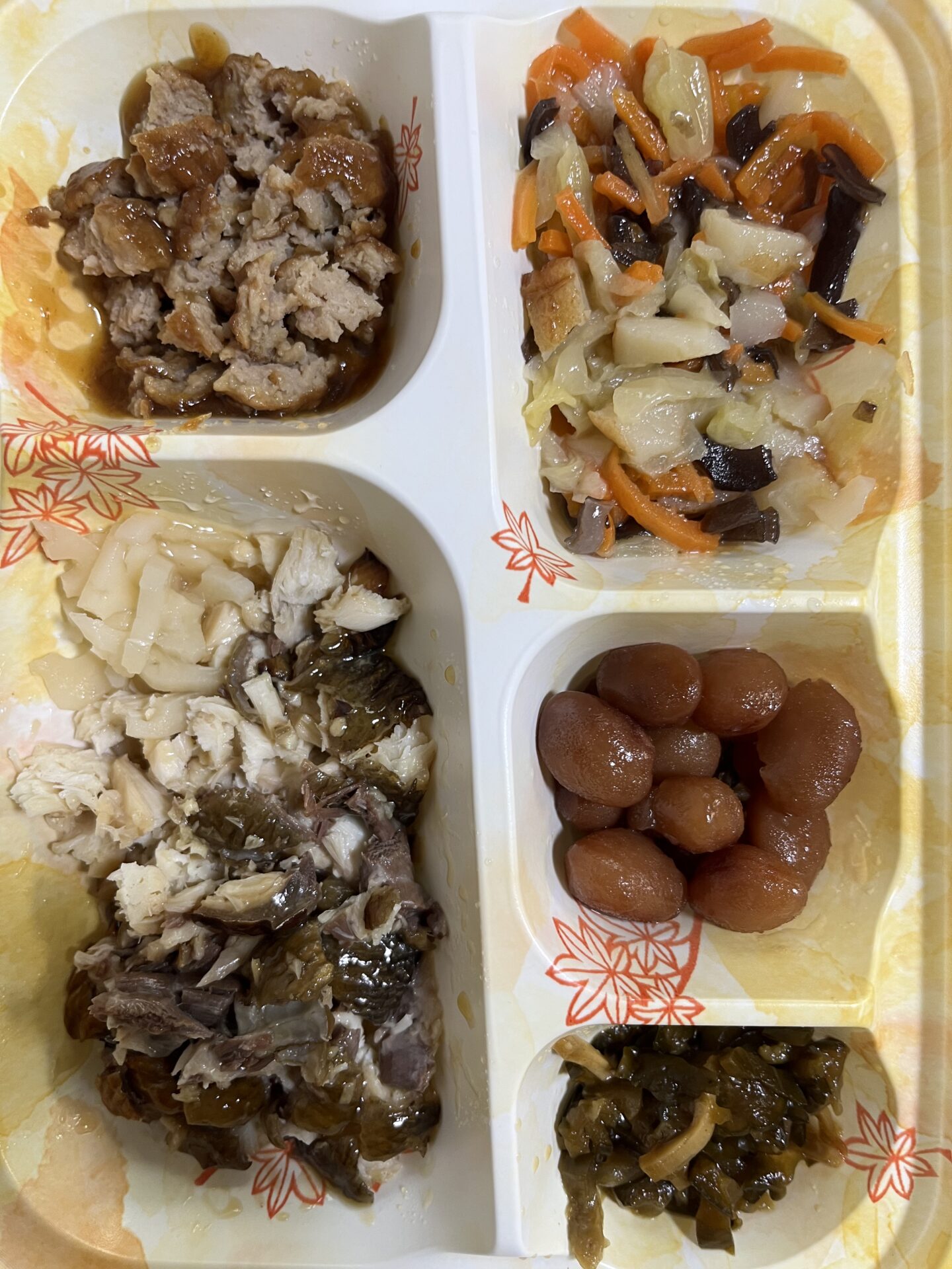 ショートスティ宅配cook123 【宅配クック123】歩行機能低下は、暴落に近い!2025.11.2朝食 2025.11.02投稿 低下 / 刻み普通食 / 在宅介護 / 宅配クック123 / 暴落 / 朝食 / 歩行機能 2025.11.1夜161-99-36.7 2025.11.2朝 朝食 宅配クック123 刻み普通食 全体 銀ひらす照焼き 銀ひらす照焼き れんこんの甘酢漬け ミートボール(オニオンソース) キャベツとさつま揚げの中華煮 うずら豆 胡瓜の生姜漬け 玄関から門まで30mほどあるのだが、その間に4〜5回躓いた母。 幸いにもディのスタッフ(男性)にキャッチされて転倒まではいかなかった。 ショート直後の歩行機能低下は仕方がないのだが、今回は暴落・・・って感じ。