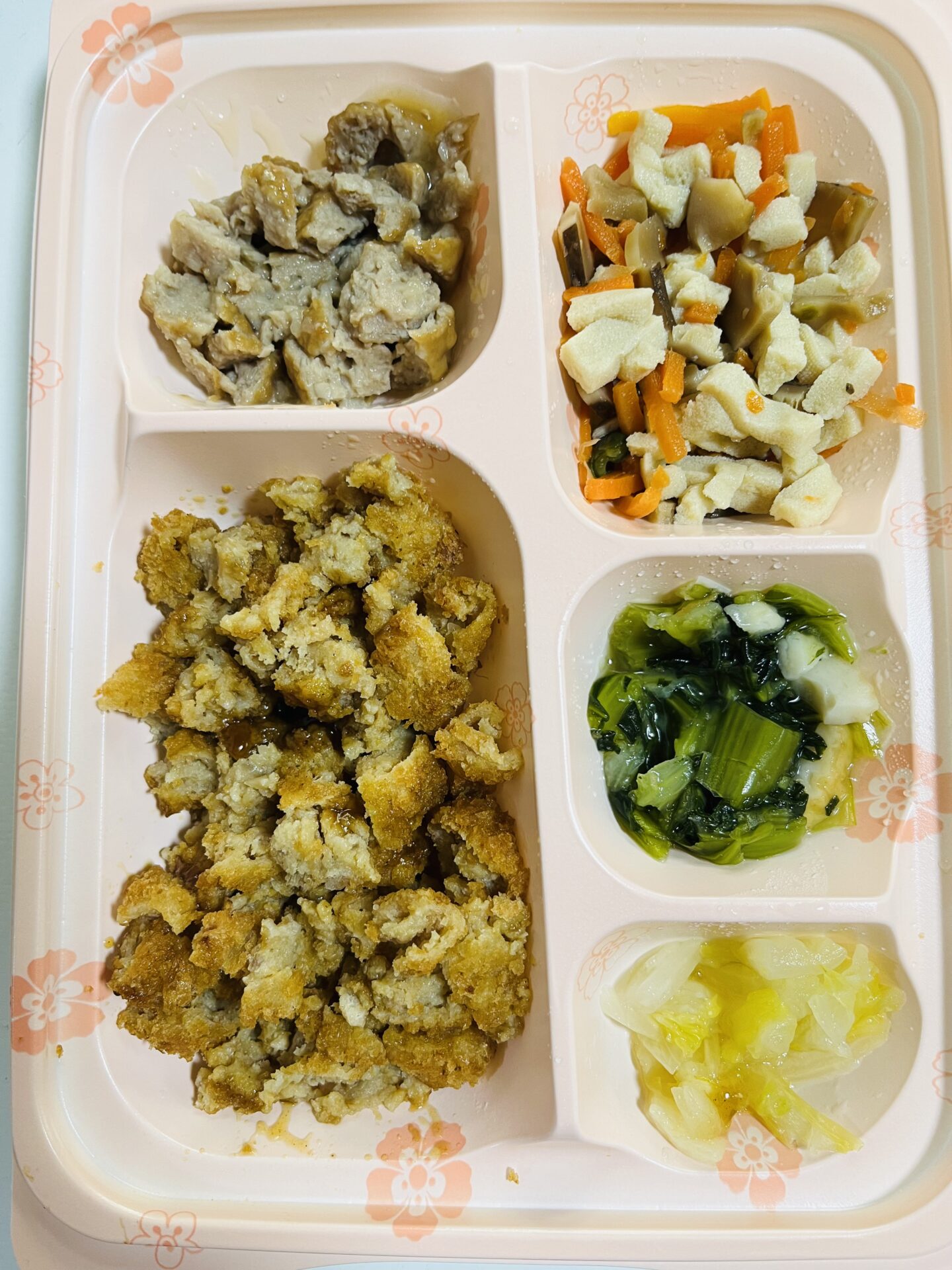 宅配cook123 【宅配クック123】老人の自主性は、介護者にとってワガママでしかない!2024.3.31朝食 2024.04.03更新 刻み普通食 / 在宅介護 / 宅配クック123 2024.3.30夜138-84-36.6 2024.3.31朝135-77-36.2 朝食 宅配クック123 刻み普通食 全体 メインのおかず(鶏ごぼうフライ) 鶏ごぼうフライ ミートボール(柚子おろし) 高野豆腐と野菜の煮物 小松菜とちくわの煮浸し 白菜漬け フライソース 老人の自主性とワガママは紙一重。 介護者の目が届かない場所で自主的に行動されると、転倒などのリスクが爆増する。 介護者には、これをワガママと考える。