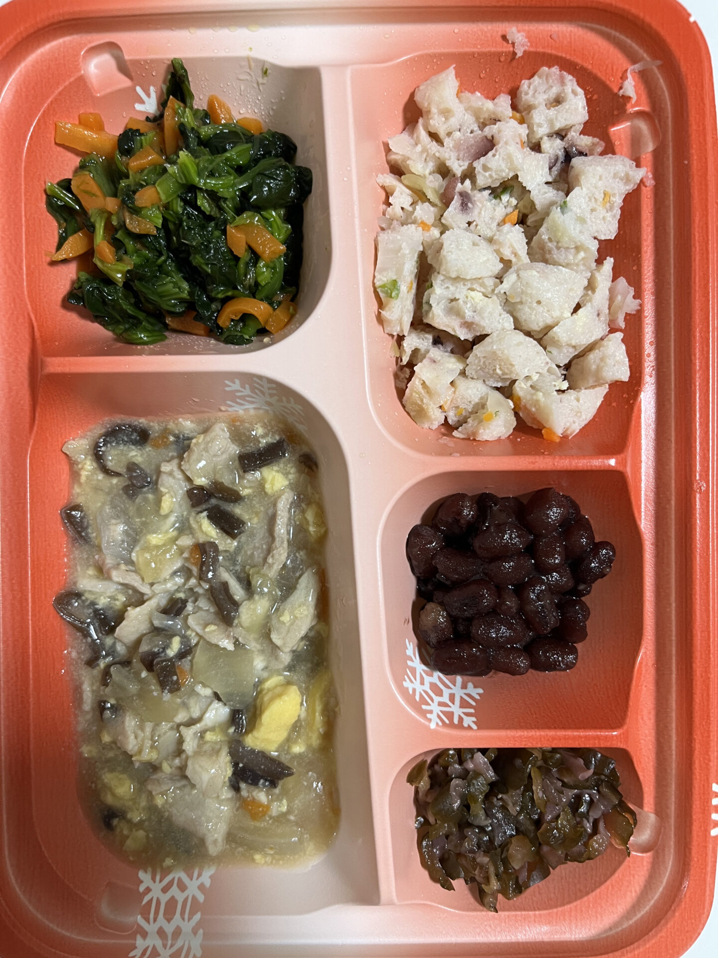 入所準備宅配cook123 【宅配クック123】自分を褒めてあげる!2025.12.15朝食 2025.12.15投稿 しまむら / モモヒキ / 下着売り場 / 刻み普通食 / 在宅介護 / 宅配クック123 / 朝食 2025.12.14夜142-86-36.3 2025.12.15朝 朝食 宅配クック123 刻み普通食 全体 豚肉と木耳の中華旨煮 豚肉と木耳の中華旨煮 ほうれん草と人参の煮浸し たこ入り豆腐しんじょう 小豆煮 しば漬け 膝上丈のモモヒキを「しまむら」まで買いに行く。 何回行っても女性の下着売り場は慣れないもんだ。 店員さんもさわしなく作業しているので、なんとか完全自力で購入。 自分を褒めてあげたい!